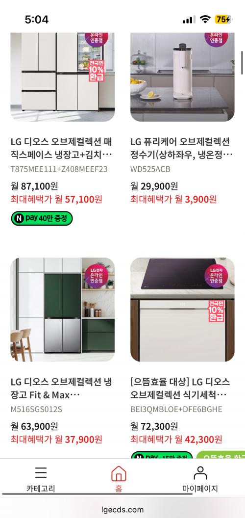 이번에 LG전자 가전 구독 알아보다가 제휴카드 쓰면 최대 50만 원 할인이 되는 걸 발견했어요.거기다 이번 달 이벤트로 네이버페이 25만 포인트도 증정이라 혜택이 꽤 크더라구요.