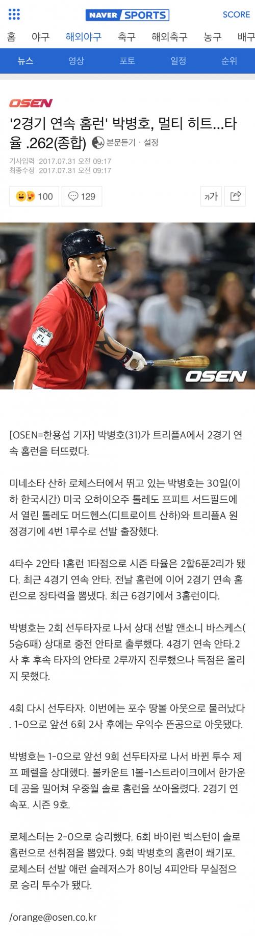 박병호 2경기 연속 홈런