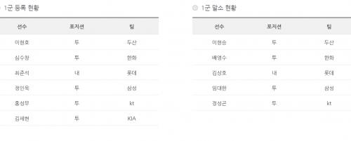 8월2일 등록 말소 현황.TXT > 야구포럼