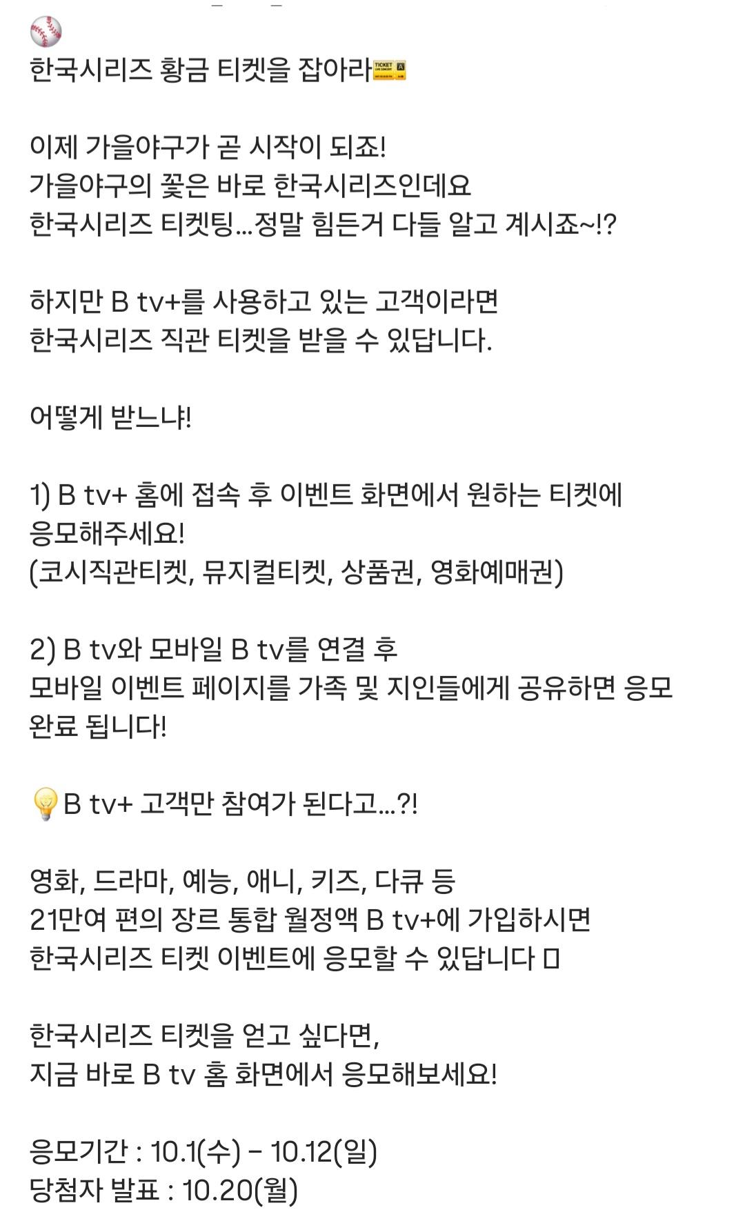 B tv+ 쓰는 김에 이런 이벤트도 참여해봤네요 > 야구포럼