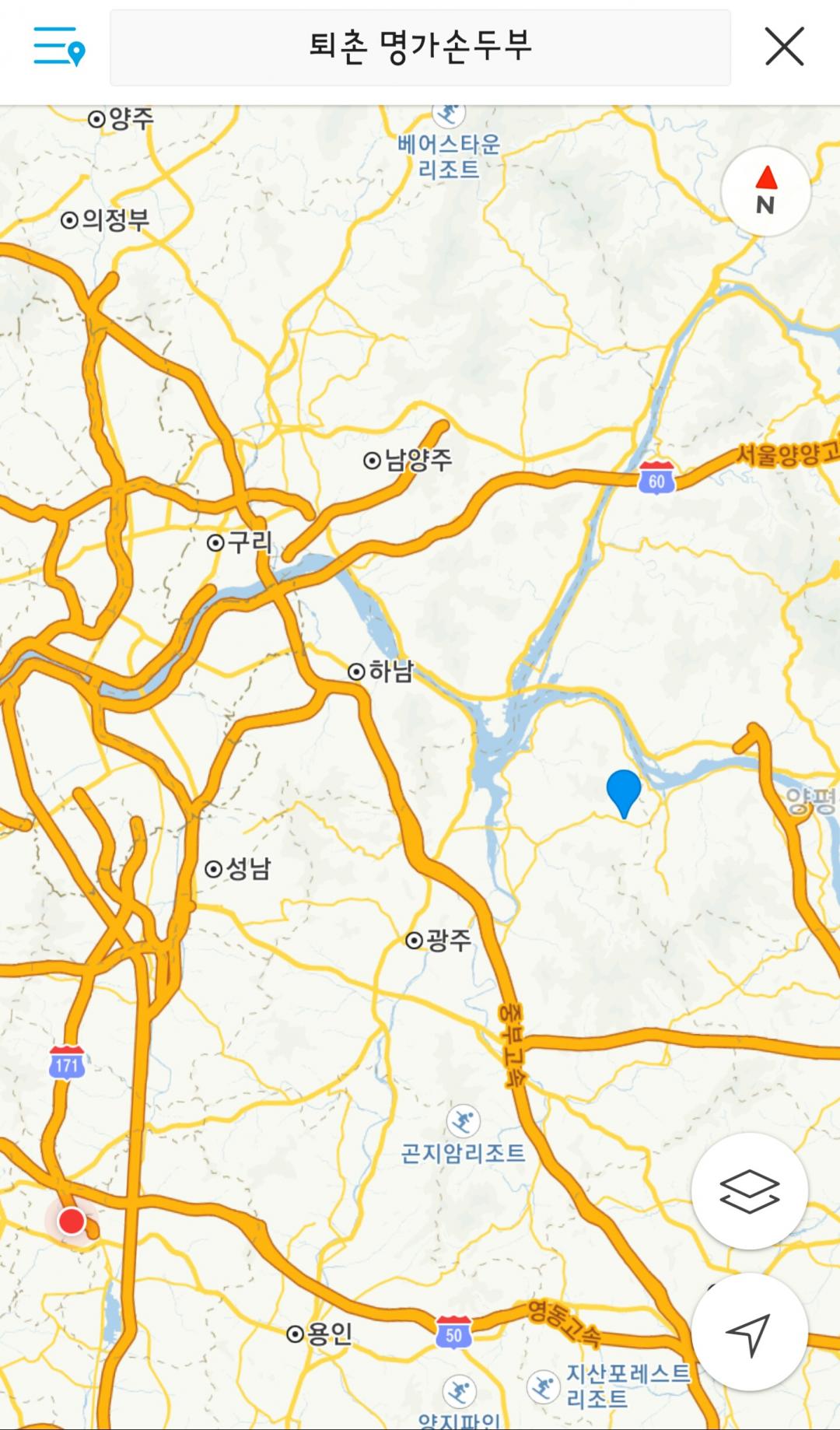 스마트폰 네비에서는 "퇴촌 명가 손두부"로 검색하니 나오는군요.