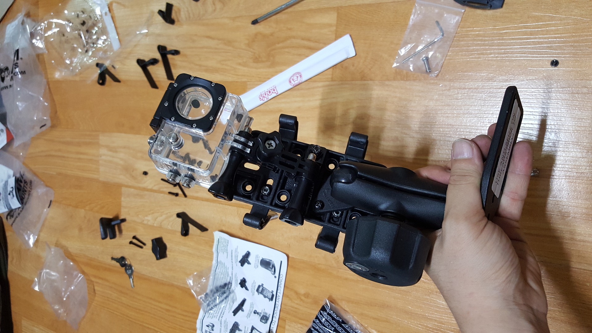 네 램마운트랑 연결해서 따로 거치대 만들 필요도 없고 좋을거 같아요!