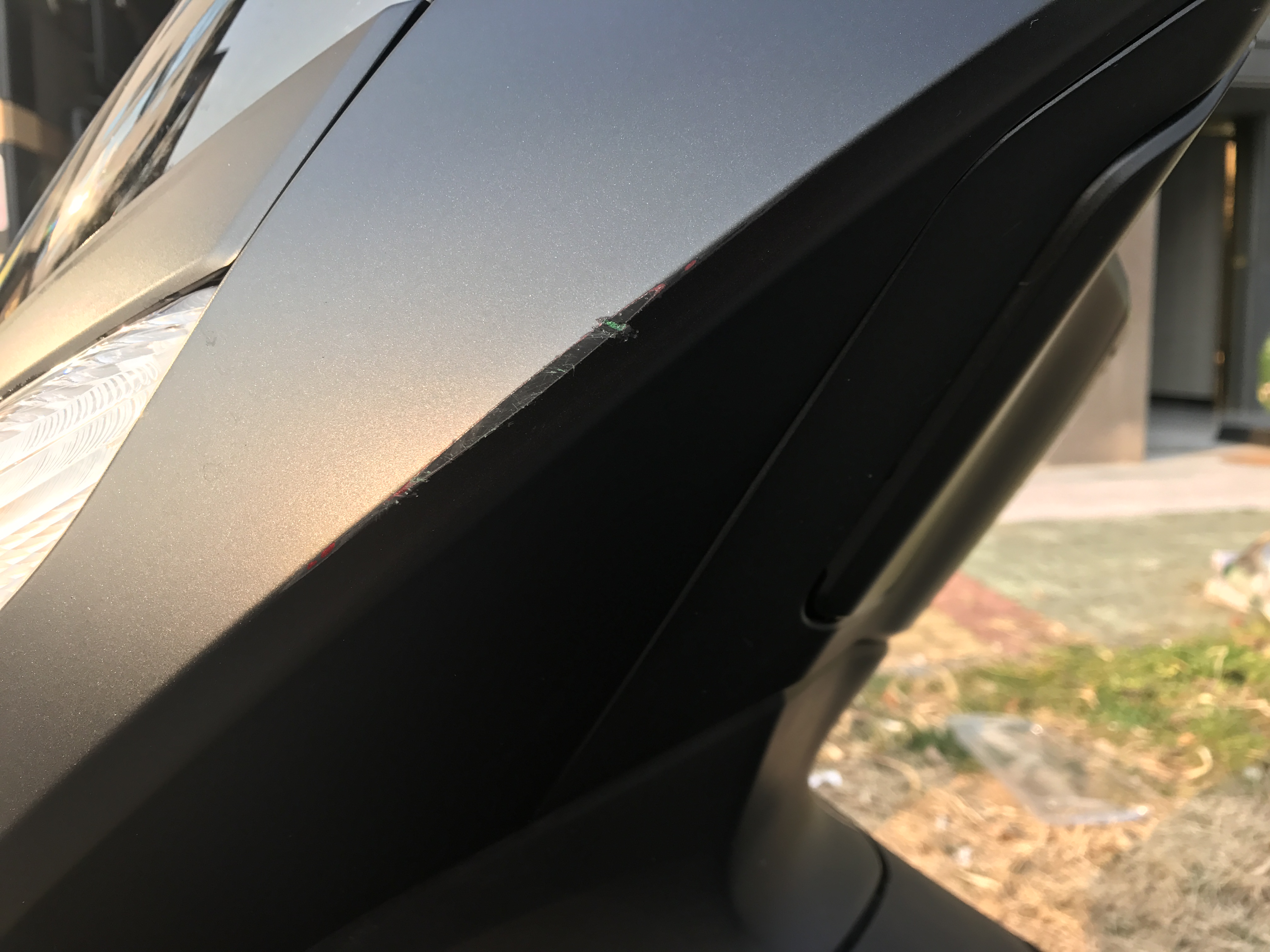 좌측은 비교적 매끄럽게 상처가 있고, 우측은 사진에서처럼 거친 상처가 있습니다. (발판에는 다소 심함)