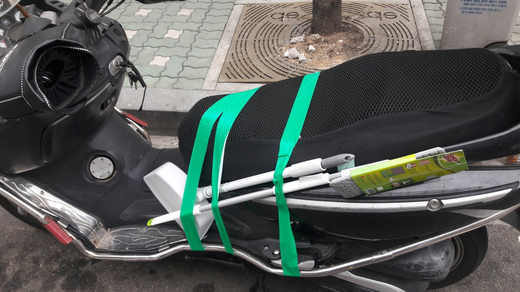청소도구를 샀는데 너무 커서 트렁크에 안들어가는 바람에......