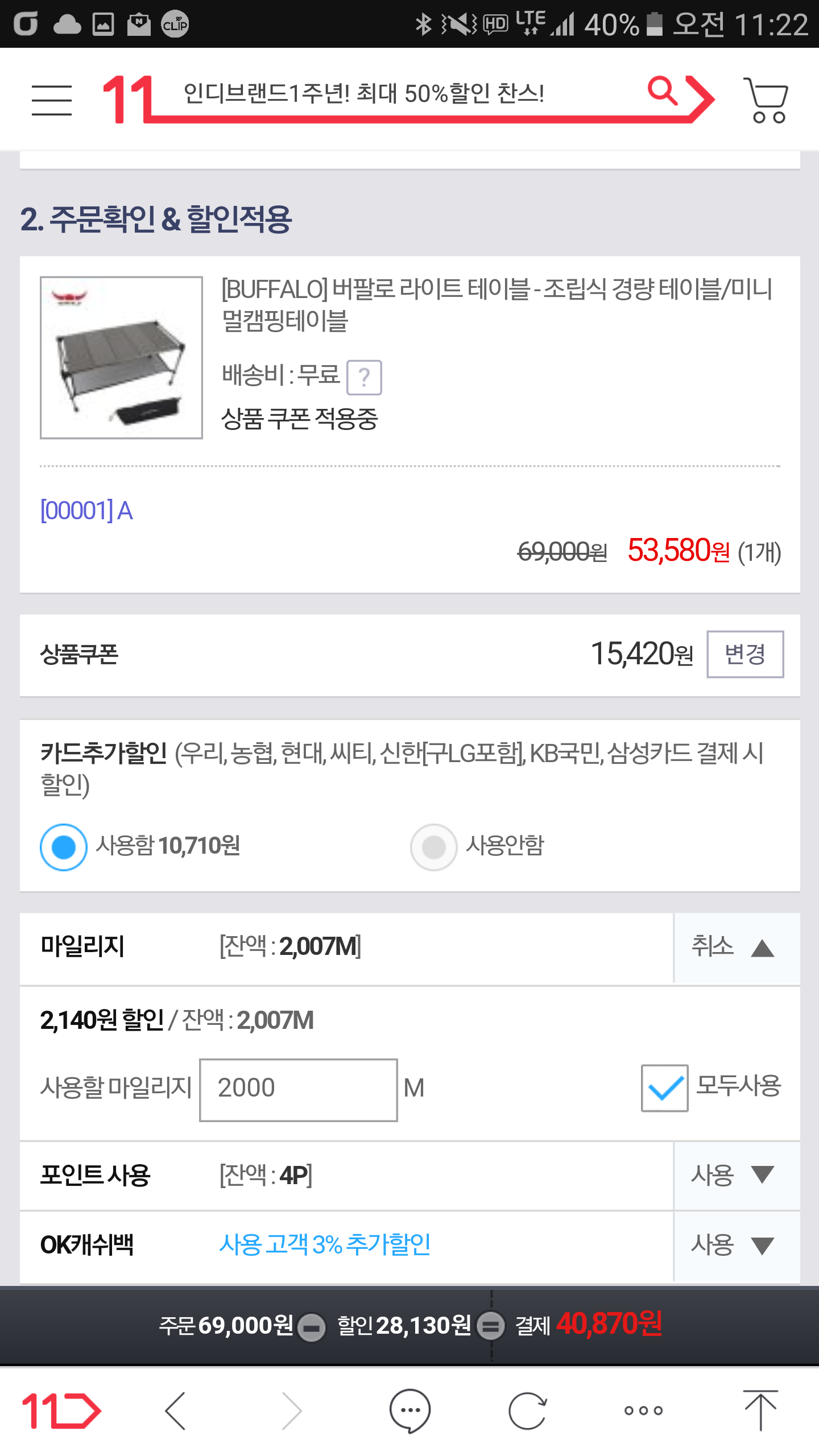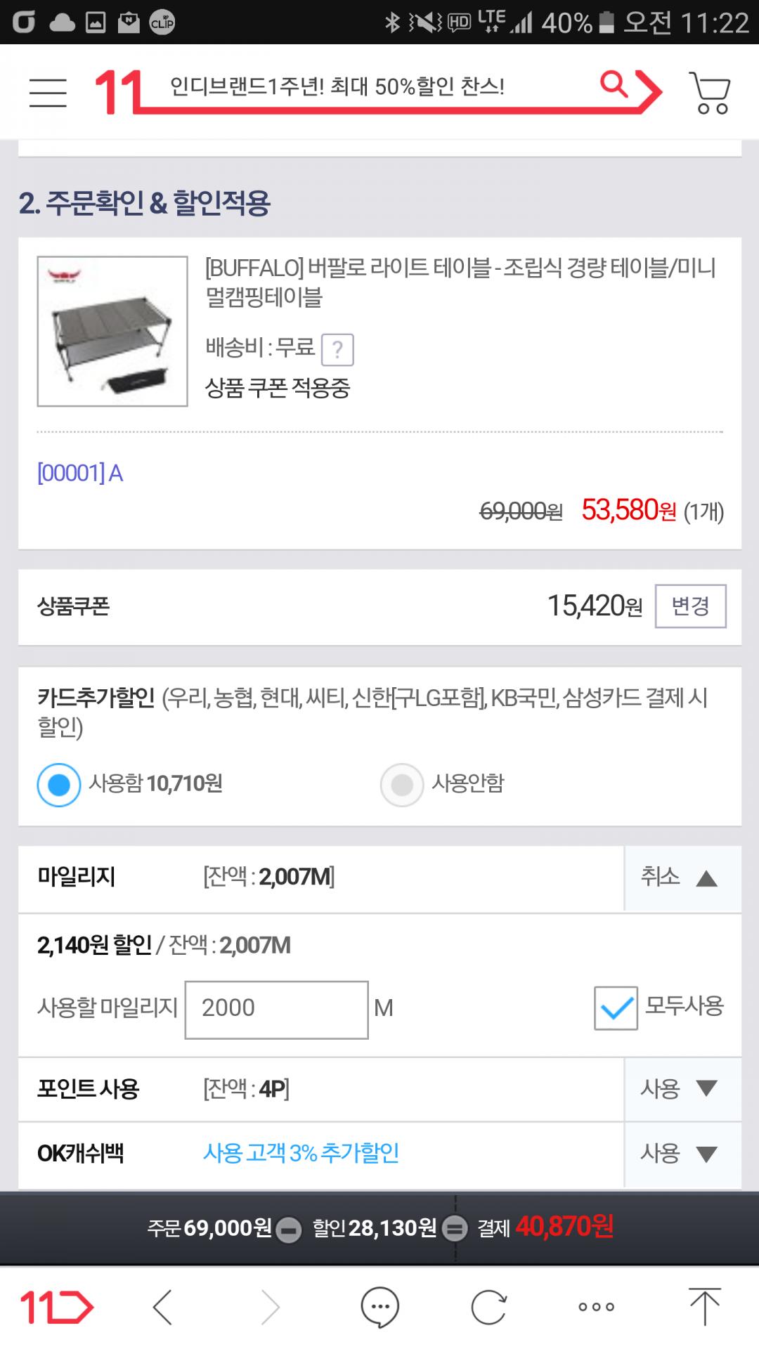 대박 쿠폰이네유. 기본쿠폰 장바구니 쿠폰 먹고...카드 할인으로 무제한 20% 먹는군요. ㄷㄷㄷ