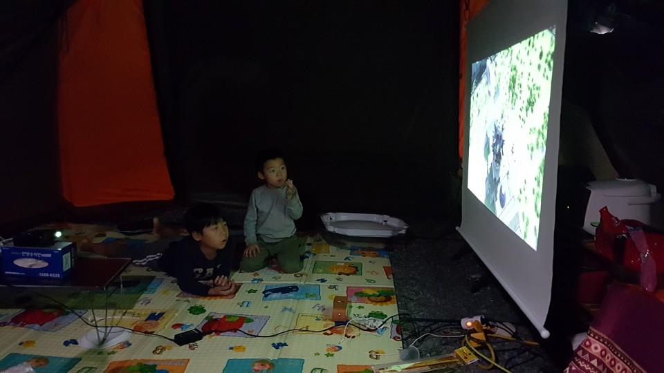 밤에 아이들은 살짝 추웠는데 리빙쉘서 잘 놀아주네여.