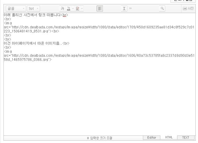 이미지 주소 복사 하셔서 html 탭에서 넣으신거에요? |