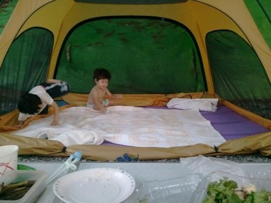 타프쉘 안에 태백산맥 돗자리 깔고도 자리가 너무 많이 남아서