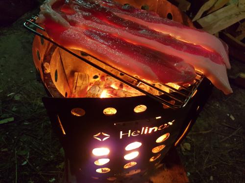 처남이 직화를 원하는 눈치여서 화로꺼내기엔 설거지가 귀찮아서 장작태우고 숯에 구워봤네요....