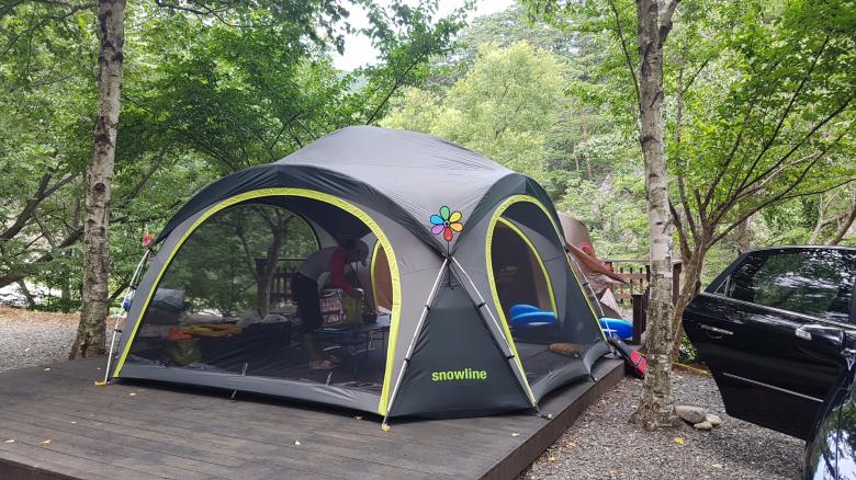 콜맨 아테나 터널 2룸..3인 가족이 쓰기엔 크지만 터널형이라 설치 간편하고 해서 겨울 되면 가져 나가려구여..