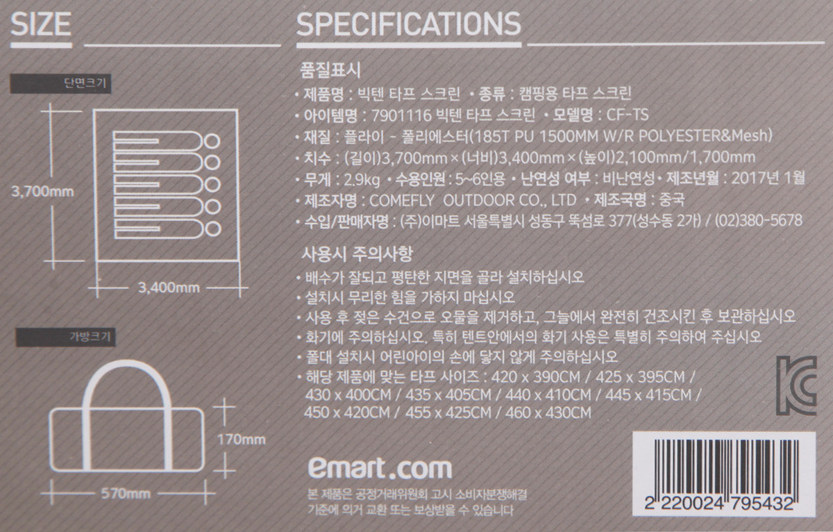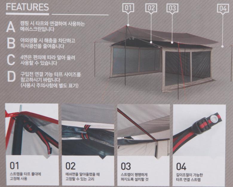 웨빙으로 조절하면 설치는 가능할듯 하네유. 370*340 이면 작기는 한데....이참에 미듐 타프를 하나더....ㅋㅋ |