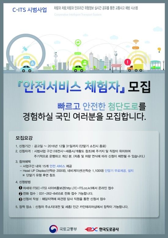 C-ITS라고 지능형 교통 체계 시스템 시범사업 체험단을 모집하네요.