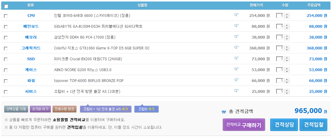 하츠님 견적에 몇가지만 바꿔서 짜봤습니다.
