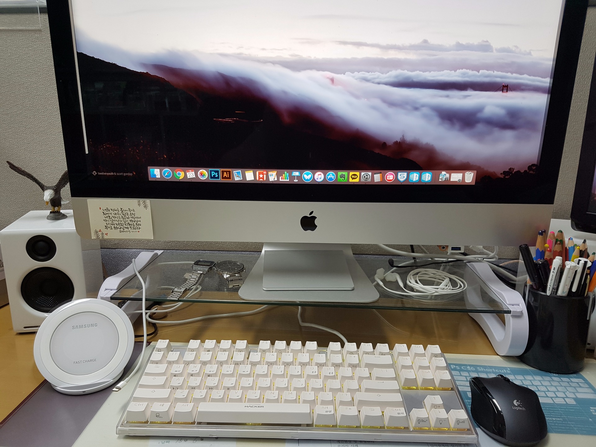 책상 정리한 김에 책상 사진 한 번 찍어봤습니다
