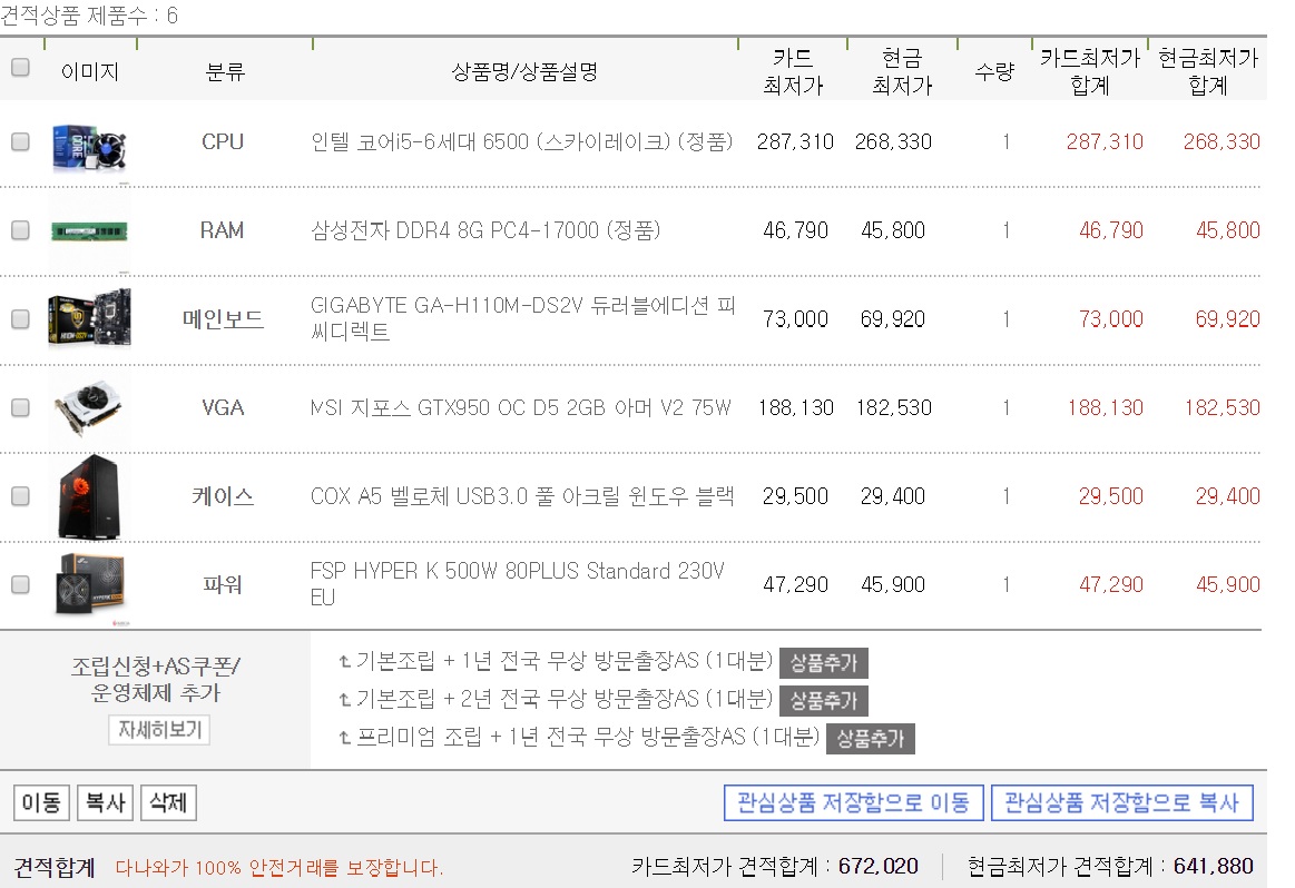 SSD는 원래있던거 사용하고 그래픽카드는 gtx 650있던거 그냥 쓸까하다가 75W짜리 보조전원 필요없는 그래픽카드로 한번 골라봤어요