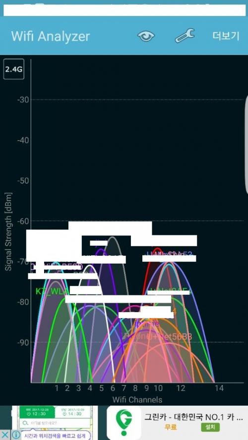 사진중에 신호세기 낮은 그래프에서 빨간색 그래프와 하늘색을 보시면되겠습니다.
