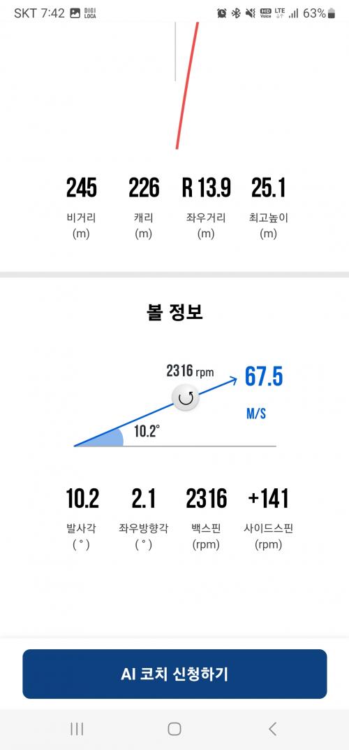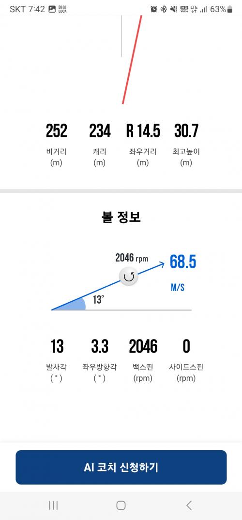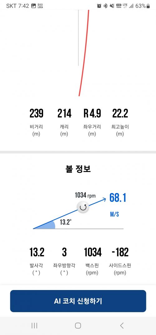 트랙맨에서는 대부분 드로우 구질로 1시 방향으로 날라가서 12시에 떨어졌는데