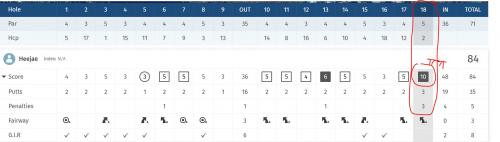 아 17번 홀은 세컨 어프로치 뒤땅 나서 겨우 3온.. 겨우 2퍼트 보기 했습니다.