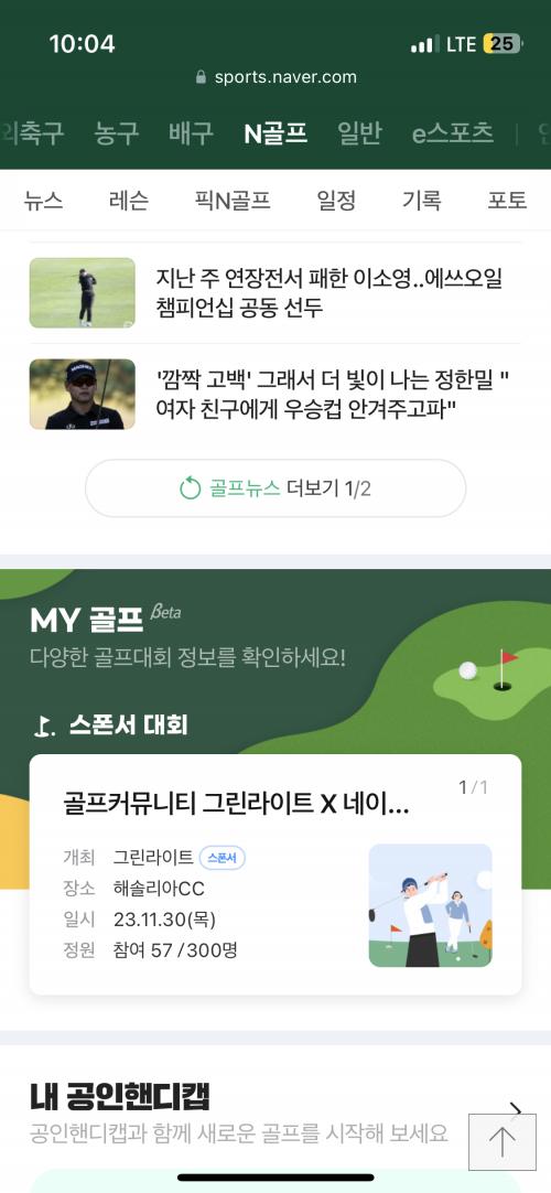 하단으로 내리다보면 내 공인핸디캡 접속해서