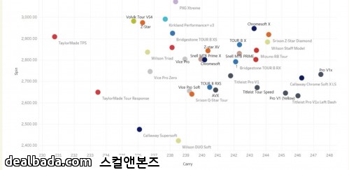 2023버전입니다. 이게 매년(2년마다 측정) 틀리고요. 저 챠트는 헤드스피드 100mph 결과값입니다. 하이스피드로 해놓고 보셔도 23버전 tp5는 좀 거리가 안납니다. | ||
