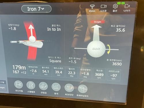t100 34도 7번 발사각 16~19 볼스피드 52-56 거리 150-170 골프존 기준