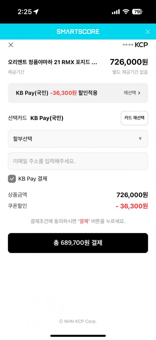 멀리건 쿠폰 + kb 국민카드 즉시할인 가격입니다
