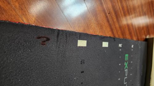 매트에 퍼터의 폭 배수로 눈금을 그려서 사용하는데, 개선품은 아예 그려져 있네요.