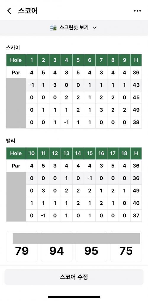 동반자 스코어와 홀 당 스코어 나오는거는 좋네요. 인식도 정확하고. 다만 스코어 통계나 재미 요소가 조금 아쉽네요. 금방 또 잘 개선하시라 믿습니다 | ||