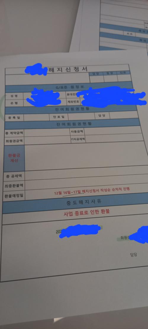 환불신청서 작성하면 2주뒤 순차지급..아뿔사