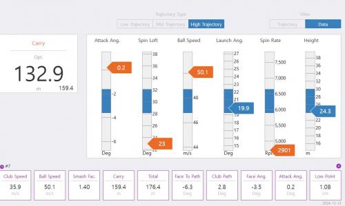정타 기준으로는 클럽스피트 35 / 볼스 50 정도이고요