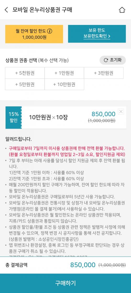 아뇨~ 금액대에 맞게 온누리 상품권 구매하시면 됩니다! | ||