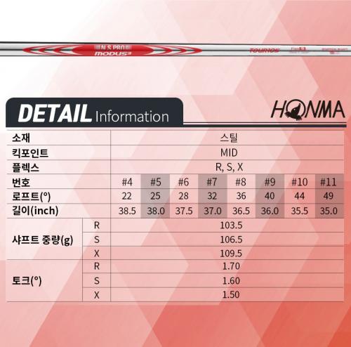 샤프트는 혼마 모듀스 105, 혼마 커스텀이라 팁이 더 단단한 편이고, 미즈노는 생다골 S200 입니다.
