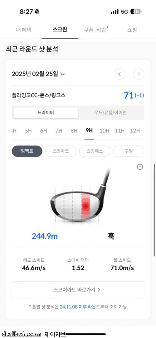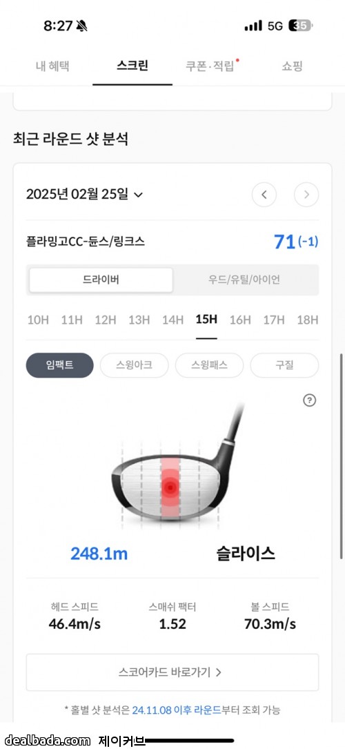 70 부럽습니다. 전 언제 70을 볼런지..ㅠㅠ필드에서는 좀 어떠신 편인가요? 좌우 안터지고 잘 가는 편인가요?? | ||