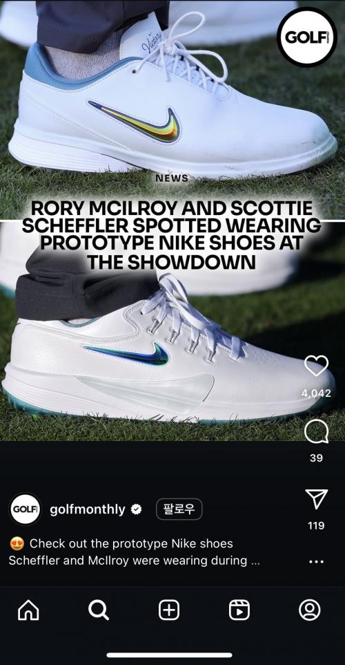 미국 공홈에도 빅토리 4 (사진 위)는 나와도 셰플러 골프화(사진 아래)는 안보여서 인스타 찾아보니 아직은 프로토타입으로 셰플러에게만 지급되고 있나봅니다.