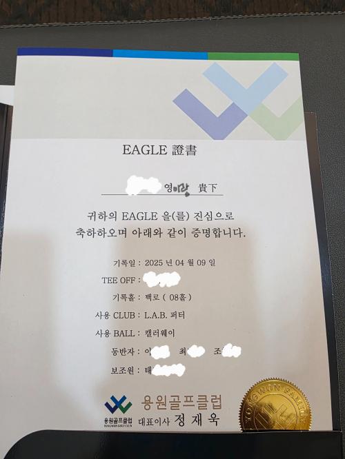 파4 1원 근거리퍼터로 이글이라니-!! 축하드립니당~~~