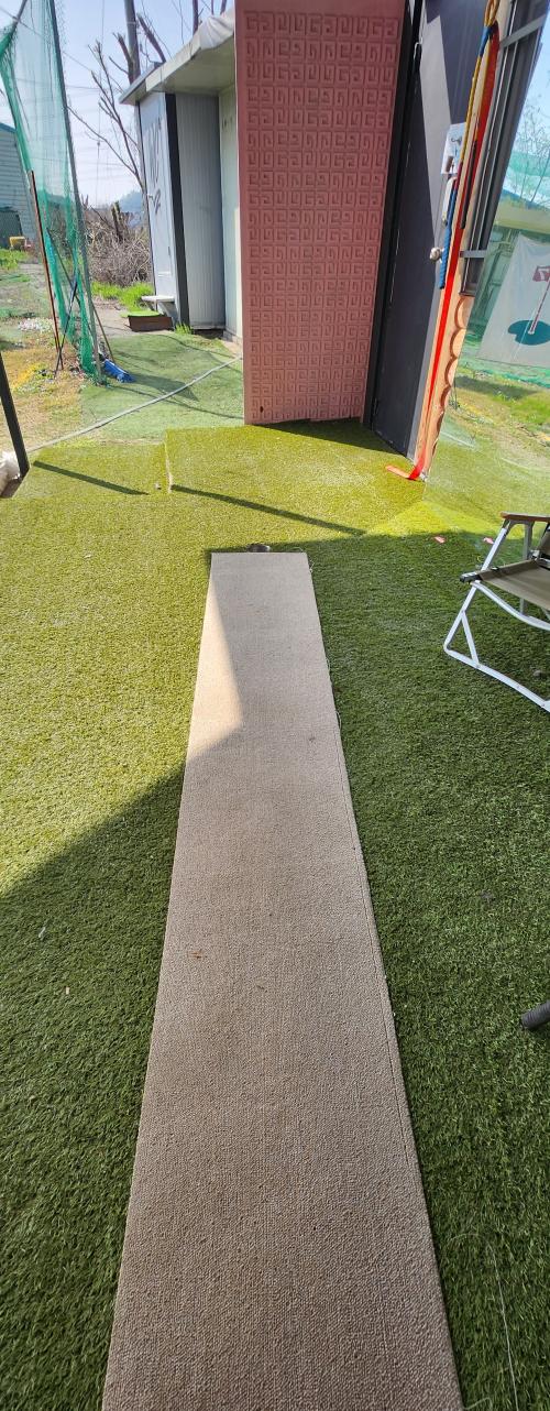 조선잔디 어프로치+매트타석에서 천연 양잔디 타석으로 만들어 봤습니다. 남는 잔디는 조선잔디위에 모래뿌려두고 그위에 식재 타석 뒤봇나면 교체용으로 써야겠습니다. 사진 순서가 뒤죽박죽이네요.타겟만 다시주문해서 달면 끝....