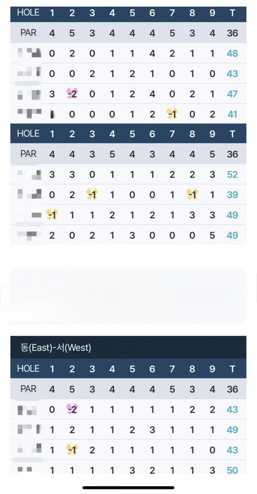 동촌cc 월례회 세팀인데 두 팀에서 같은 홀에 샷 이글이 두개 나왔네요 ㅎㅎ