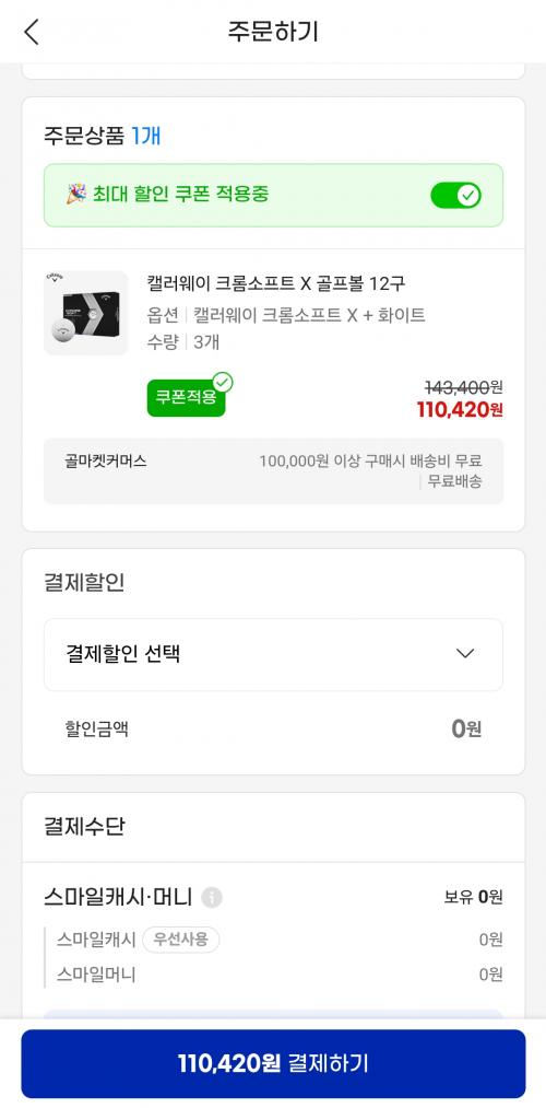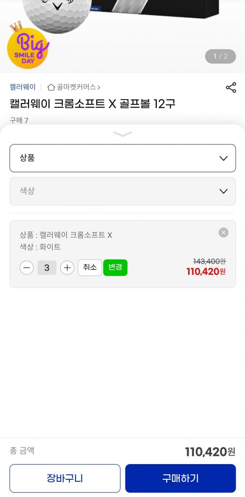 캘러웨이 크롬소프트, X, X LS 22년 화이트 3더즌 배송비 포함 110,420원