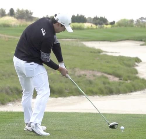 백스윙 끝에서 좀 일어서는게 보이네요. | ||
