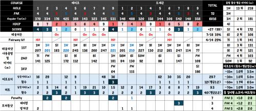 저는 샷을 기록하면 자꾸 이전 샷에 기억에 매몰되서 이후 플레이가 나빠지는 스타일입니다. 무조건 다음 샷에만 집중하려 무지 노력하는 편이라 저런 데이터를 만들수 없습니다. 누가 따라다니면서 만들어주면 좋겠어요 ㅠ_ㅠ | ||