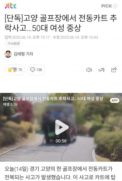 어제 제가 7번홀에 가고있었는데 캐디가 무전 듣고 비명 지르더라고요.