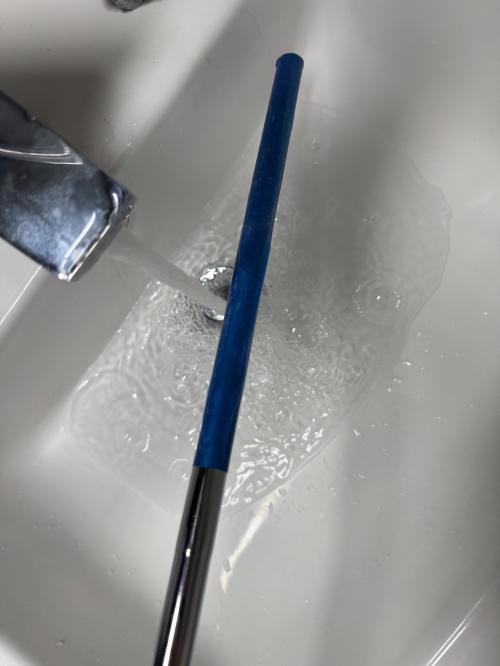 그립에 물을 충분히 적셔줍니다. 물을 적시니까 테이프 겉면이 미끌미끌합니다.