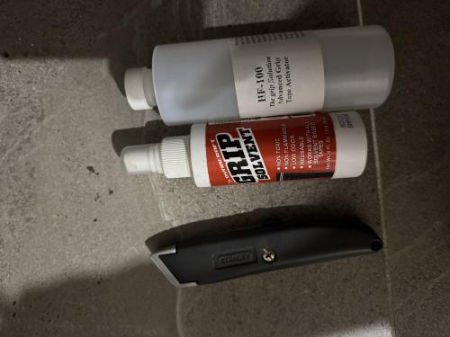 위에 녀석들은 제가 그립교체 작업할때 쓰던 용액과 그립교체용 커터입니다.