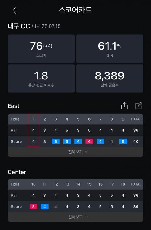 그러다가 거짓말처럼 오늘 76타를 기록했네요.