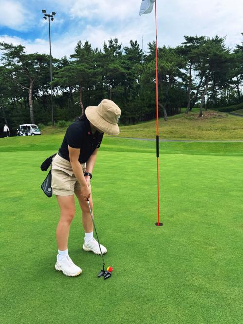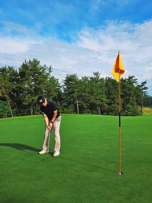 일찍 도착해서 연습 그린에 퍼팅감을 익힙니다.