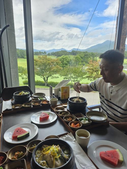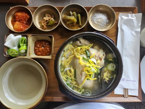 어딜가도 사람 많고 오늘은 비싸지만 레스토랑에서 삼계탕을 먹습니다.