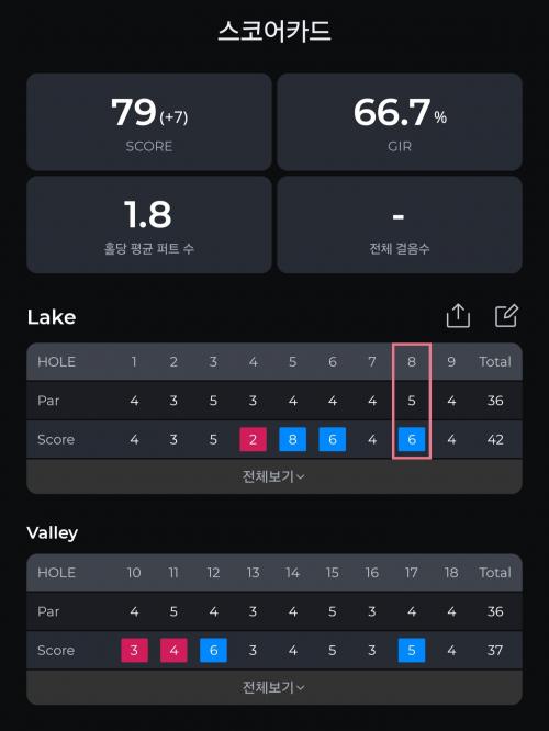 후반 37타 1오버로 총 79타 7오버의 성적으로 마무리했습니다.