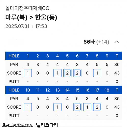 필드 나가신 횟수에 비해서 정말 안정적인 스코어를 가지고 계십니다. 한주가 행복하셨겠습니다. 저도 한번 정도 저렇게 한 주 마음 먹고 임박티 잡아서 정말 순수하게 샷과 퍼팅 자체에 집중해 보고 싶은 생각이 드네요!! | ||