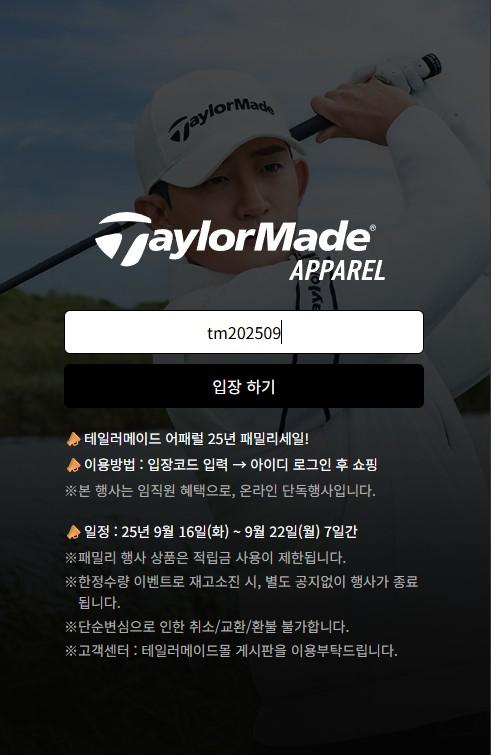 테일러메이드어패럴 패밀리세일 최대 60%