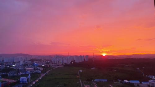 며칠 전 어두워질 시간에 연습하고 있는데 갑자기 조금 환해 지더라구요 노을 때문이었습니다 장마 때문에 한동안 못 봤는데...